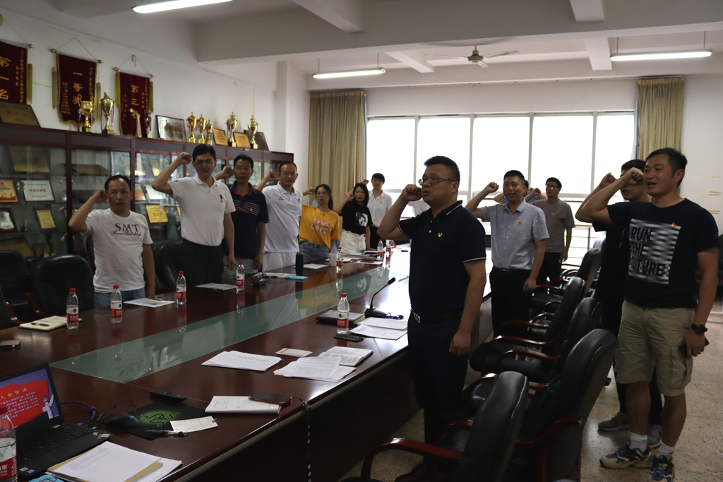 根据省委和学校党委的统一安排部署,结合学校基层党支部专题组织生活会工作要求,体育工作部党直支于2020年7月8日下午召开了“庆祝建党99周年,重温入党誓词,坚定理想信念”主题党日活动。