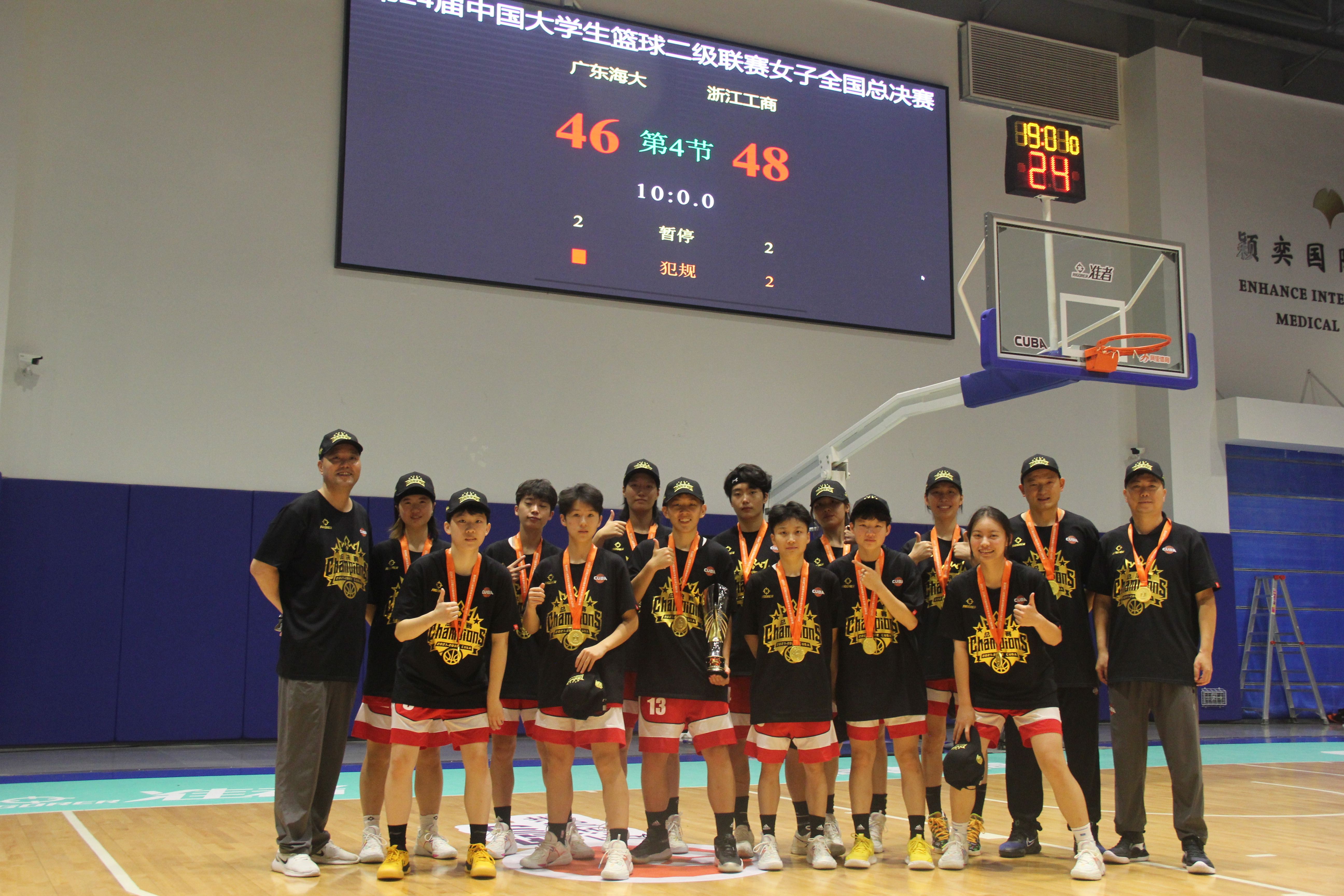 下半场回来两队展开对攻,叶雨梦单节10分,带领成人导航 稳固着两位数的领先优势。第三节双方战成15平,成人导航 以41-29继续领先广东海洋大学。末节成人导航 突然陷入得分荒,广东海洋大学全力反扑,打出一波10-0缩小分差,随着对方球员三分球打板命中,广东海洋大学将比分追为39-41。关键时刻马佳琪三分命中,帮助成人导航 及时止血。最终成人导航 以48-46战胜广东海洋大学,夺得第24届CUBA二级联赛女子总冠军。