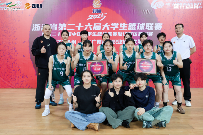 2025年11月1—8日,浙江省大学生篮球赛(女子甲A组)在金华市浙江广厦建设职业技术大学举办,本次比赛共有来自全省12支甲A组女篮代表队参加,我校女子篮球队在领队郑苏法,教练员刘志、沈建国老师的带领下,参加了本次比赛。比赛期间校党委副书记方向明亲自到比赛现场为女篮姑娘们加油助阵,并勉励全体队员要积极发扬顽强拼搏的浙商大体育精神,赛出风格赛出水平!我校女篮一路过关斩将,最终获得第三名的好成绩,刘志老师荣获“浙江省优秀教练员”称号。